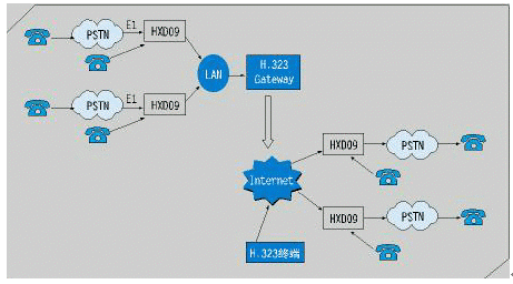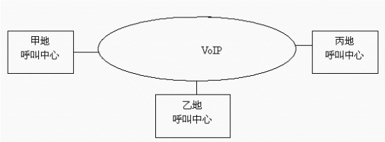 PRI,ISDN BRI,E&M或VoIP 等接口實(shí)現(xiàn),每條話路只須8Kbit/s帶寬,并支持網(wǎng)絡(luò)優(yōu)化路由及D通道座席預(yù)約,大大降低網(wǎng)絡(luò)連接費(fèi)用,提高運(yùn)行效率。目前主流的方式是采用VoIP技術(shù)。如下圖所示:
