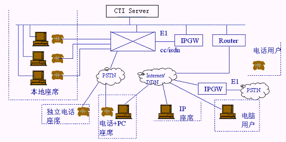 | 支持多種座席類型 | 座席類型包括:PC+耳麥、PC+電話、PC+IP電話、普通電話和IP電話。具有強(qiáng)大的坐席應(yīng)用:支持事件管理、外撥管理、客戶信息管理、公告欄等。 提供完善的遠(yuǎn)程坐席方案,在遠(yuǎn)程坐席能實(shí)現(xiàn)數(shù)據(jù)、語(yǔ)音同步。 支持分布式呼叫中心。 |