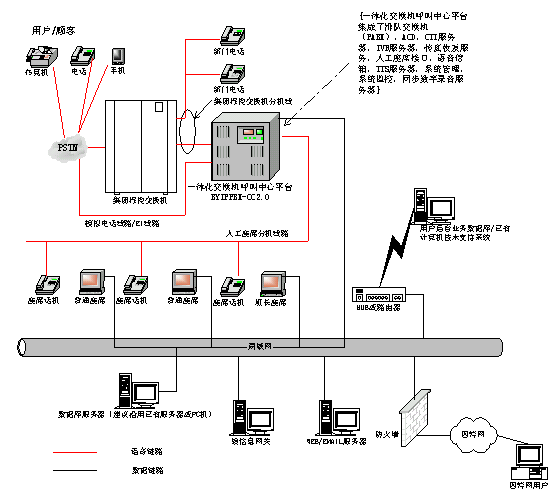 基于博宇科技一體化交換機(jī)呼叫中心平臺(tái)產(chǎn)品BYIPPBX-CC2.0的長(zhǎng)安鈴木公司客戶(hù)服務(wù)中心系統(tǒng)網(wǎng)絡(luò)結(jié)構(gòu)