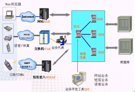 單個SLE同時支持電話、網(wǎng)站、短消息等接入方式,通過SDT制作業(yè)務(wù)流程可以實現(xiàn)多種接入方式的互通的業(yè)務(wù)。
