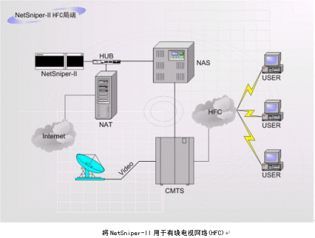 NetSniper-II也可以作為局端設(shè)備,用于xDSL(ADSL/VDSL)、PSTN(電話撥號(hào)網(wǎng)絡(luò))、HFC(有線電視網(wǎng)絡(luò))等。此時(shí),NetSniper-II能夠有效的防止控制共享上網(wǎng)、盜用MAC地址上網(wǎng)和Modem回?fù)苌暇W(wǎng)的情況發(fā)生。下面兩個(gè)圖例指出了如何將NetSniper-II用于局端。