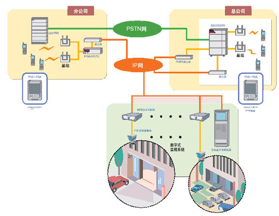 - 可以實(shí)現(xiàn)先在各分支機(jī)構(gòu)分散的按鍵電話系統(tǒng)改裝IP群組接入裝置,構(gòu)成分支機(jī)構(gòu)辦公室環(huán)境。