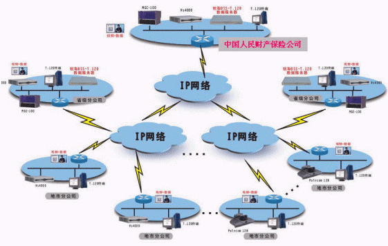 中國人民財(cái)產(chǎn)保險(xiǎn)股份有限公司,是中國內(nèi)地最大的非壽險(xiǎn)公司,香港證交所上市公司。經(jīng)過50多年的發(fā)展,中國人保財(cái)險(xiǎn)公司已經(jīng)發(fā)展成為網(wǎng)點(diǎn)遍布全國31個(gè)省市區(qū),共有營業(yè)機(jī)構(gòu)4000余個(gè)的大型商業(yè)公司。為提高辦公效率,降低差旅成本,中國人保財(cái)險(xiǎn)公司決定建設(shè)覆蓋從總公司、省分公司到地市分公司的視頻會議系統(tǒng),項(xiàng)目總?cè)萘窟_(dá)600多個(gè)節(jié)點(diǎn),采用兩級級連方式組網(wǎng),要求系統(tǒng)具備視頻、音頻、數(shù)據(jù)交互功能,。