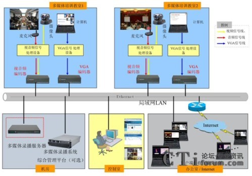圖:中國電力投資集團高級培訓中心多媒體錄播組網(wǎng)架構(gòu)