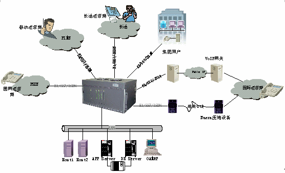 - 具有多種接口和信令,能與國內(nèi)外各種PSTN網(wǎng)和IP網(wǎng)連接