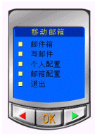 進(jìn)入移動(dòng)郵件系統(tǒng)后,可分別選擇"登陸郵箱、郵箱注冊(cè)、找回密碼、返回上級(jí)"來進(jìn)行下一步操作。