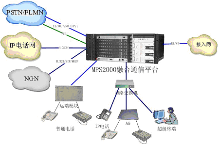 MPS2000融合通信平臺接入手段豐富,能夠提供V5協(xié)議與接入網(wǎng)相連,同時平臺能夠通過其遠(yuǎn)端模塊接入普通電話,通過AG(接入網(wǎng)關(guān))接入普通電話,通過內(nèi)部數(shù)據(jù)網(wǎng)接入IP電話以及軟電話終端(超級終端)。豐富的終端接入充分保證了用戶能夠在各種情況下的語音通信需求。目前,該套設(shè)備已經(jīng)在浙江移動投入使用,不久就可提供給全國各地的運營商及大中企事業(yè)單位。