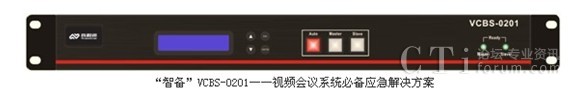 在視頻會(huì)議召開(kāi)的過(guò)程中,主會(huì)場(chǎng)視頻終端等設(shè)備如果發(fā)生故障時(shí)其音視頻信號(hào)會(huì)發(fā)生中斷,由此將會(huì)使整個(gè)視頻會(huì)議無(wú)法繼續(xù)進(jìn)行,傳統(tǒng)的解決辦法是配置第二套視頻終端作為冷備份,當(dāng)主設(shè)備發(fā)生中斷時(shí)由系統(tǒng)維護(hù)人員以手工方式切換至備用設(shè)備。北京真視通自主研發(fā)的智備(產(chǎn)品型號(hào):VCBS-0201),解決了主會(huì)場(chǎng)主備終端的自動(dòng)、快速、無(wú)縫切換的問(wèn)題。