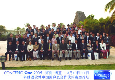 2005年3月11日,在絢麗的煙火、優(yōu)雅的水上芭蕾和來自全國(guó)金融、電信、航空、政府等70多位代表的掌聲中,Concerto One - 科勝通軟件2005中國(guó)用戶及合作伙伴高層論壇于風(fēng)景如畫的海南博鰲落下帷幕。
