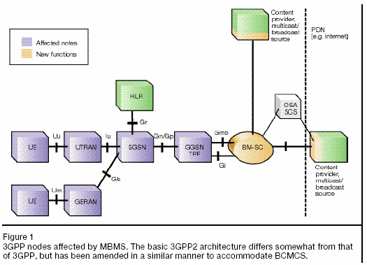 在核心網(wǎng)絡(luò),MBMS和BCMCS增加了創(chuàng)造和管理廣播和組播信息分支所需要的功能和協(xié)議信息。