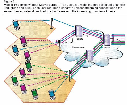 許多移動(dòng)運(yùn)營(yíng)商在2004年推出了移動(dòng)電視業(yè)務(wù),使用者可以通過(guò)他們的手機(jī)終端觀看電視節(jié)目。目前是通過(guò)點(diǎn)對(duì)點(diǎn)的移動(dòng)流媒體技術(shù)來(lái)提供移動(dòng)電視業(yè)務(wù)的。然而,由于類似移動(dòng)電視這種“多媒體”業(yè)務(wù)即將大規(guī)模地爆發(fā)應(yīng)用,因此需要采用新的網(wǎng)絡(luò)通信技術(shù)如廣播和組播。