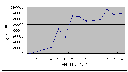 還是說回來。河北鐵通這個業(yè)務(wù)從60線開始穩(wěn)健起步,如圖所示,在3個月的磨合時間里,它主要依靠口碑傳播,每個月才兩萬元的收入,業(yè)務(wù)雖然開始贏利,但是并不可觀,怎樣才能快速提升業(yè)務(wù)價值?