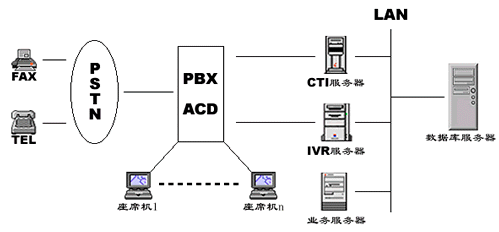 1.交換機(jī)+CTI服務(wù)器+IVR+傳真服務(wù)器….