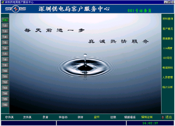 在座席的主畫面的右邊是業(yè)務功能選擇區(qū),是根據用戶實際工作的具體要求開發(fā)的。(隨后詳細介紹供電行業(yè)的業(yè)務功能模塊)