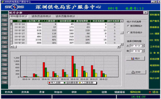 所有話務數據均以數據庫方式存放,每一次話務動作都記入流水庫中,本統(tǒng)計分析可對話務活動進行各種統(tǒng)計分析。