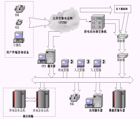 (3)自動轉(zhuǎn)人工服務(wù)。系統(tǒng)還可自動轉(zhuǎn)接人工坐席,由電力專業(yè)人員負責解答和處理客戶意見。或者將客戶服務(wù)中心系統(tǒng)與后臺數(shù)據(jù)庫服務(wù)器相接,通過客戶提供的相關(guān)信息,為客戶提供個性化的在線服務(wù)。