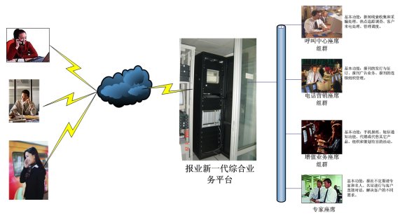 報(bào)業(yè)新一代綜合業(yè)務(wù)平臺(tái)包括:報(bào)業(yè)的呼叫中心、電話營(yíng)銷平臺(tái)、增值業(yè)務(wù)平臺(tái)。