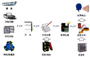 -----按照人類言語功能的不同層次,語言合成也可分成三個層次,它們是:(1)從文字到語音的合成(Text-To-Speech);(2)從概念到語音的合成(Concept-To-Speech);(3)從意向到語音的合成(Intention-To-Speech)。這三個層次反映了人類大腦中形成說話內(nèi)容的不同過程,涉及人類大腦的高級神經(jīng)活動。不難想象,即使是按規(guī)則的文字到語音合成(文語合成)也已經(jīng)是相當困難的任務(wù)。為了合成出高質(zhì)量的語言,除了依賴于各種規(guī)則,包括語義學規(guī)則、詞匯規(guī)則、語音學規(guī)則外,還必須對文字的內(nèi)容有很好的理解,這將涉及自然語言理解的問題。從這一點講,文語轉(zhuǎn)換系統(tǒng)實際上也可看作一個人工智能系統(tǒng)。圖1顯示了一個完整的文語轉(zhuǎn)換系統(tǒng)示意圖。文語轉(zhuǎn)換過程是先將文字序列轉(zhuǎn)換成音韻序列,再由語音合成器生成語音波形。其中第一步涉及語言學處理,例如分詞、字音轉(zhuǎn)換等,以及一整套有效的韻律控制規(guī)則;第二步需要先進的語音合成技術(shù),能按要求實時合成出高質(zhì)量的語音流。因此一般說來,文語合成系統(tǒng)都需要一套復(fù)雜的文字序列到音素序列的轉(zhuǎn)換程序,也就是說,文語轉(zhuǎn)換系統(tǒng)不僅要應(yīng)用數(shù)字信號處理技術(shù),而且必須有大量的語言學知識的支持。當然其中語音合成終究還是最基本的部分,它相當于“人工嘴巴”,任何語言合成系統(tǒng)包括文語轉(zhuǎn)換系統(tǒng),都離不開語音合成器。