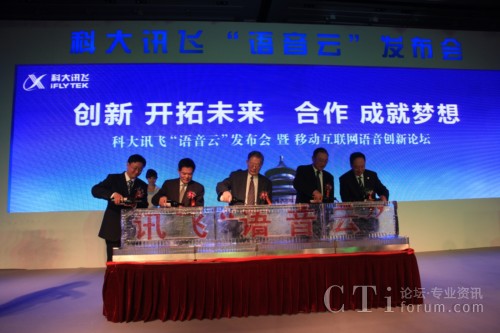CTI論壇(ctiforum)10月29日消息(記者 潘婷婷): 2010年10月28日,“科大訊飛‘語音云’發(fā)布會暨移動互聯(lián)網(wǎng)語音創(chuàng)新論壇”在北京香格里拉飯店隆重舉行?拼笥嶏w作為中國語音產(chǎn)業(yè)領(lǐng)導(dǎo)者,在業(yè)界率先推出“訊飛語音云”,對于促進國家新近確定的七大戰(zhàn)略新興產(chǎn)業(yè)之一的“新一代信息技術(shù)”發(fā)展具有重大意義,將推動移動互聯(lián)網(wǎng)邁入語音時代,創(chuàng)新無限豐富的應(yīng)用、創(chuàng)造廣闊的市場藍海。因此,此次發(fā)布會得到了各界的高度關(guān)注,各相關(guān)政府部門領(lǐng)導(dǎo),聯(lián)想、騰訊、愛國者、優(yōu)視科技、播思通訊等各行業(yè)及移動互聯(lián)網(wǎng)領(lǐng)軍企業(yè)的代表,媒體界朋友,匯聚一堂、共襄盛舉,并就移動互聯(lián)網(wǎng)與語音產(chǎn)業(yè)的相互融合、創(chuàng)新發(fā)展、合力共贏進行了深入熱烈的探討。