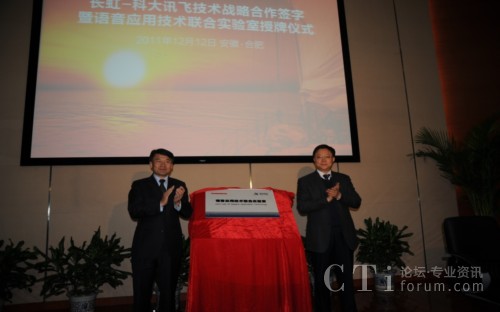CTI論壇(ctiforum)12月14消息(記者 潘婷婷): 12月12日,科大訊飛與長虹集團戰(zhàn)略合作簽約暨共建聯合實驗室揭牌儀式在科大訊飛語音產業(yè)基地研發(fā)大樓隆重舉行。根據合作框架協議,雙方將在戰(zhàn)略聯盟的基礎上,以共建聯合實驗室為主要載體,旨在依托各自行業(yè)領域的長期積淀優(yōu)勢、強強聯合,達成戰(zhàn)略互信,加強緊密合作,積極推動“語音核心引擎+智能終端平臺” 的特色應用模式,深入拓展智能語音科技在智能電視等終端產品市場的應用范圍,合力開創(chuàng)智能語音終端創(chuàng)新應用市場空間。