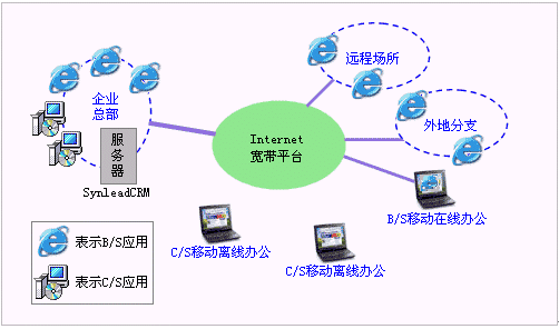 SynleadCRM企業(yè)版4.0可以擴(kuò)充C/S客戶端。B/S架構(gòu)在Internet平臺(tái)上具有很好的多分支機(jī)構(gòu)擴(kuò)展性和單邊維護(hù)性(即只是維護(hù)服務(wù)器),而C/S架構(gòu)往往通過Internet
