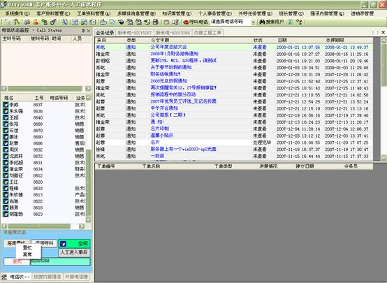 在個人事務(wù)管理中,坐席人員方便的設(shè)定工作計劃安排,查詢呼叫記錄(呼入、呼出、呼入失。瞻l(fā)個人Email、短信息、個人公文以及進行公文流轉(zhuǎn)等。