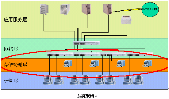 存儲管理層的管理機主要承擔著為E&E終端提供軟件(操作系統(tǒng)和應用軟件)的服務。根據(jù)實際需要,管理機可以提供多種操作系統(tǒng)的環(huán)境和多種應用的環(huán)境。每臺管理機最大可以為60臺的E&E終端提供服務,可以實現(xiàn)操作系統(tǒng)、應用、配置的統(tǒng)一分發(fā)和維護。