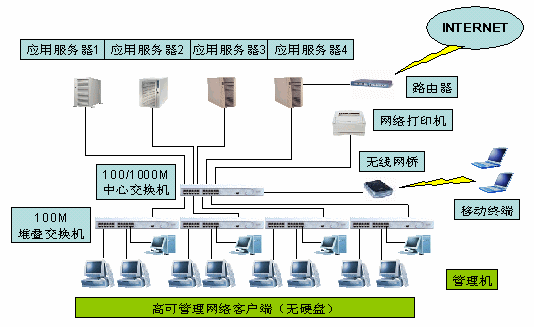 2、 部署一套操作系統(tǒng)系統(tǒng)和應用軟件就可以最多為60臺終端使用。