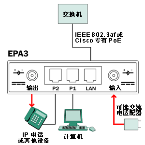 EPA3 是緊湊型適配器,允許 IP 電話或其他附件通過現(xiàn)有的局域網(wǎng)布線接收數(shù)據(jù)并為其供電,而無需修改現(xiàn)有的以太網(wǎng)基礎(chǔ)結(jié)構(gòu)。EPA3 集成了一個(gè) 3 端口交換機(jī),以便可以連接一個(gè)帶電源的設(shè)備以及另外一個(gè)設(shè)備。