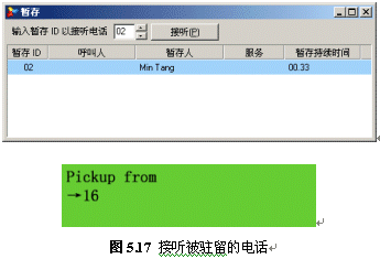 接通后,如果通話內(nèi)容很緊急而又不方便在會議室進(jìn)行溝通,此時,用戶可以按下話機上的“Park”按鈕,此時對方通話被導(dǎo)入到一段音樂(背景音中設(shè)定的音樂)。記住屏幕上提示的駐留號碼,即可掛機: