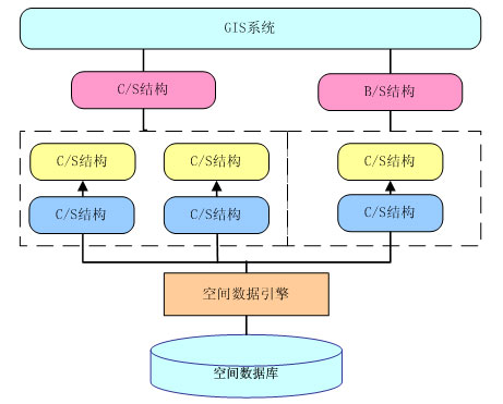 GIS應(yīng)用劃分成基于C/S結(jié)構(gòu)的應(yīng)用和基于B/S結(jié)構(gòu)的應(yīng)用兩種。前一種結(jié)構(gòu)適用于實現(xiàn)數(shù)據(jù)的采集、入庫、編輯和復(fù)雜的空間分析、專題制圖等應(yīng)用,主要是面向數(shù)據(jù)維護人員和專業(yè)分析人員使用的,以及為領(lǐng)導(dǎo)和專家提供輔助決策和分析之用;而后一種結(jié)構(gòu)比較適合于實現(xiàn)簡單的地圖發(fā)布、空間查詢等應(yīng)用,主要面向的是廣大的Internet用戶。由于這兩種結(jié)構(gòu)各有優(yōu)缺點,而從指揮中心的總體角度來看,兩種結(jié)構(gòu)的應(yīng)用都是不可缺少的。系統(tǒng)的總體結(jié)構(gòu)將是一個同時包含了C/S和B/S兩種結(jié)構(gòu)的混合型、綜合型結(jié)構(gòu)。系統(tǒng)結(jié)構(gòu)如下: