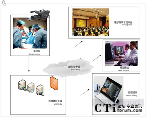 該方案可通過設(shè)置在各手術(shù)室的前端攝像機、遠(yuǎn)古醫(yī)療直播服務(wù)器等設(shè)備將醫(yī)院手術(shù)室手術(shù)過程進(jìn)行記錄,可通過權(quán)限實時觀看,也可自動或手動上傳至資源服務(wù)器,術(shù)后通過計算機播放,可以滿足觀看者隨時隨地的觀看手術(shù)過程的要求,完全擺脫了傳統(tǒng)示教模式在時間、空間和人數(shù)上的限制。