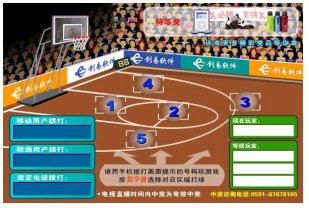 場(chǎng)地分成 5 個(gè)區(qū)域,分別對(duì)應(yīng) 1 - 5 ,想在哪個(gè)區(qū)域投籃就按電話機(jī)上對(duì)應(yīng)的 1-5 號(hào)鍵或直接在手機(jī)上寫短信區(qū)域號(hào)( 1-5 )發(fā)送到短信號(hào)碼,即可完成一次進(jìn)攻,投中后即可可獲得獎(jiǎng)品。本游戲由電視臺(tái)、網(wǎng)站與電信運(yùn)營(yíng)商聯(lián)合經(jīng)營(yíng)的電信增值業(yè)務(wù),由電視臺(tái)提供頻道向電視觀眾播出游戲畫面(含圖像和聲音),電信運(yùn)營(yíng)商提供電話線路和短信通道,參與者通過固定電話、小靈通和手機(jī)參與游戲,運(yùn)營(yíng)方通過收取固定電話、小靈通和手機(jī)的信息費(fèi)實(shí)現(xiàn)盈利。