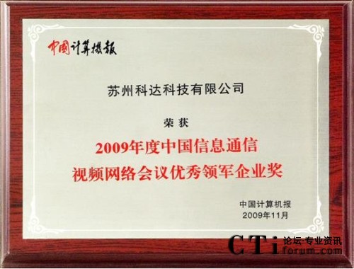 CTI論壇(ctiforum)12月24日消息(記者 潘婷):近日,在2009中國信息通信產(chǎn)業(yè)年度評選活動中,科達憑借優(yōu)秀的品牌效應和領先的市場占有率榮獲“中國信息通信視頻網(wǎng)絡會議優(yōu)秀領軍企業(yè)獎”。