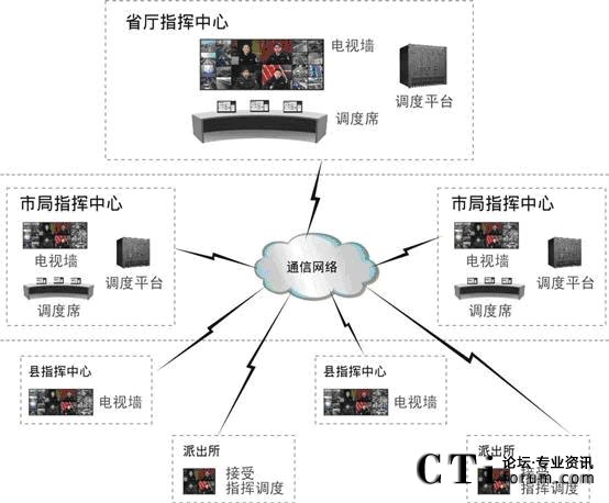 系統(tǒng)支持大型或中小型調(diào)度指揮中心部署,也支持在領(lǐng)導(dǎo)辦公室部署小型指揮點(diǎn);各個(gè)前端點(diǎn)可通過E1專線或以太網(wǎng)接入中心平臺(tái),也可通過衛(wèi)星、無線等方式支持移動(dòng)終端的接入。