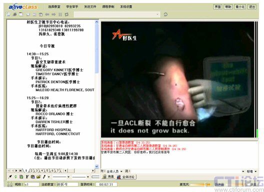 好醫(yī)生運(yùn)用的是衛(wèi)星版的Active Class,在視頻傳輸上能達(dá)到高度清晰,可以看清手術(shù)過程中的非常細(xì)小的部位,使學(xué)員如在手術(shù)現(xiàn)場一般,目睹手術(shù)全過程。