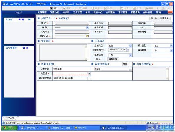 融天科技多媒體呼叫中心可同時支持電話、留言、郵件、傳真、短信、視頻、Web-Call等全方位的服務(wù)模式,包括自動呼叫分配、呼叫排隊、座席分組、客戶資料自動彈屏、運營監(jiān)控、統(tǒng)計分析等全套的呼叫中心功能,座席應(yīng)用界面也是采用非常友好全中文Web方式(下圖為標準界面,融天科技的研發(fā)團隊可為您非常靈活的定制企業(yè)個性化的功能及界面):