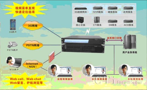 注:同時也可以讓用戶的傳統(tǒng)呼叫中心平滑升級到3G視頻視頻呼叫中心。