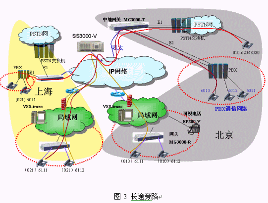 我們建設(shè)mindSYS系統(tǒng)的時候基本上不改變原來PBX的布線和配置,PBX原來的數(shù)字中繼直接連接到運營商的程控交換機,我們現(xiàn)在只是將PBX的數(shù)字中繼連接到中繼網(wǎng)關(guān)MG3000-T。PBX通信系統(tǒng)的電話完全沒有改變,還使用原來的電話號碼,打分機直接撥小號,打外線先撥0。mindSYS系統(tǒng)下的電話使用方式也完全一樣,對用戶來說就是一套系統(tǒng)。如北京的6011可以直接撥打6111,6111用戶也可以直接撥打6011,6111打外線先撥0,如062043020。北京的用戶呼叫異地用戶需要撥打完整號碼(大號),如北京的6011用戶撥0216111就可以接通上海的用戶,反之亦然。mindSYS系統(tǒng)的電話(圖2的所有電話)之間通話都免費。這樣我們的行業(yè)用戶可以既不改變原來的使用習慣,又能夠靈活的規(guī)劃各地的電話號碼來完成一個大型的跨地域的電話系統(tǒng)。