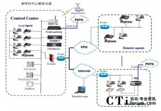 - 服務(wù)中心網(wǎng)絡(luò)化——充分利用IP話機(jī)的靈活移動和免費特點,服務(wù)中心的人工坐席可以靈活設(shè)置;