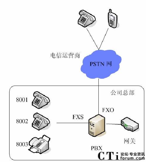 圖一:PBX組網(wǎng)