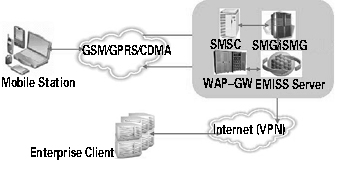 EMISS 移動信息服務(wù)系統(tǒng)是構(gòu)建于企業(yè)平臺與移動運營商數(shù)據(jù)支撐平臺之間的增值業(yè)務(wù)服務(wù)系統(tǒng),在主體結(jié)構(gòu)上劃分為EMISS Server 和Enterprise Client。