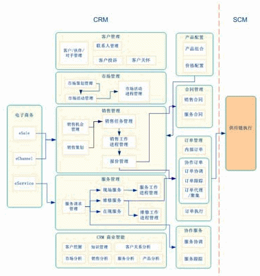 實現(xiàn)動態(tài)價值鏈環(huán)境下的CRM,支持電子商務、協(xié)作商務,并與SCM集成。
