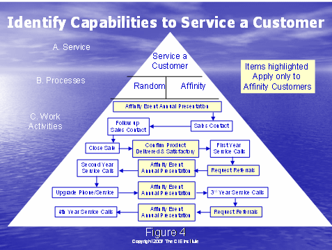 圖4中的全部圖片推翻了所需的服務(wù)客戶(hù)的行動(dòng)。這兩種方法提供了不同的過(guò)程以達(dá)到這個(gè)結(jié)果。在這個(gè)部分的底部,C. 工作行動(dòng),這些方格體現(xiàn)了頂端開(kāi)始的行動(dòng),和經(jīng)歷之前描述的獲得和保持客戶(hù)的過(guò)程。