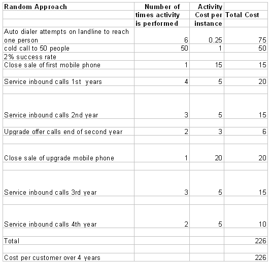 表格1:獲得客戶(hù)的隨機(jī)法的行動(dòng)成本計(jì)算