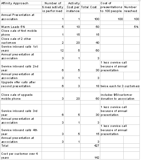 表2:獲得客戶(hù)的密切關(guān)系法的行動(dòng)成本計(jì)算