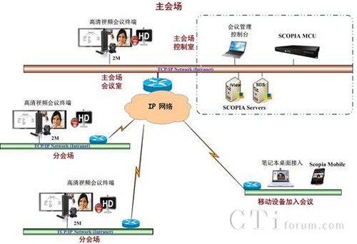 與此同時,為了使用戶在外出期間也可利用該系統(tǒng)進行高清會議溝通,RADVISION為客戶提供了業(yè)內最領先的移動會議解決方案:在總部機房部署SCOPIA Desktop服務器,配合相應的移動會議終端,用戶即可隨時隨地采用筆記本電腦、iPad等移動設備加入會議了,并可對會議進行實施的錄播控制。