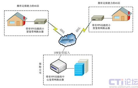 4S店通過(guò)ADSL加VPN的方式接入網(wǎng)絡(luò)。這種方式不僅接入方便、成本低、而且VPN有效的防止了網(wǎng)絡(luò)黑客的攻擊以及非法用戶的盜用,最大程度上保證了網(wǎng)絡(luò)的安全。