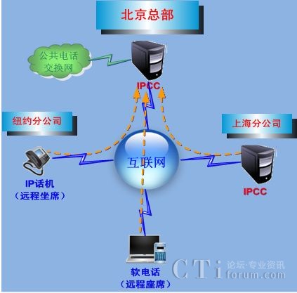 當互聯(lián)網(wǎng)發(fā)生異常中斷時,撥打其他分公司的分機,可通過接于IPCC系統(tǒng)的PSTN線路撥出,不影響企業(yè)的通信。