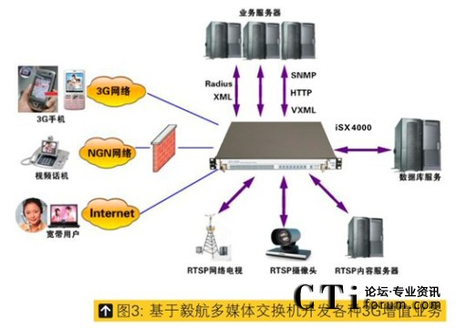 隨著中國(guó)3G用戶(hù)的日益增多,基于3G網(wǎng)絡(luò)的增值業(yè)務(wù)也日益受到各大運(yùn)營(yíng)商重視,而且運(yùn)營(yíng)商也寄希望于形形色色的增值業(yè)務(wù)能夠帶動(dòng)3G用戶(hù)的增長(zhǎng),針對(duì)這種狀況以及國(guó)內(nèi)三種運(yùn)營(yíng)商制式(TD-SCDMA、WCDMA、CDMA2000),毅航發(fā)布專(zhuān)門(mén)針對(duì)3G增值業(yè)務(wù)或2G-3G混合增值業(yè)務(wù)的真正一體化開(kāi)發(fā)平臺(tái),基于此平臺(tái)開(kāi)發(fā)者無(wú)需關(guān)心3G網(wǎng)絡(luò)接口、3G網(wǎng)絡(luò)制式、3G網(wǎng)絡(luò)信令及3G視頻編解碼而直接開(kāi)發(fā)3G業(yè)務(wù)流程即可,是目前國(guó)內(nèi)外最簡(jiǎn)單、單機(jī)承載容量最大的3G增值業(yè)務(wù)開(kāi)發(fā)平臺(tái),是在毅航通信 iSX4000 通用業(yè)務(wù)平臺(tái)的基礎(chǔ)上增加視頻模塊即可將原來(lái)在2G上的所有應(yīng)用平滑升級(jí)到3G,升級(jí)周期只需要1-2周即可,因此基于毅航增值業(yè)務(wù)平臺(tái)的3G示范應(yīng)用也很快會(huì)在中國(guó)三個(gè)不同制式的3G網(wǎng)絡(luò)上開(kāi)通。